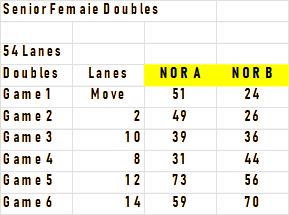 Hos damene var det Alicia Marcano som var best innledende med 1286 pinner (snitt 214,3), foran Manuela Öing 1237 og Eiko Suzuki 1218.